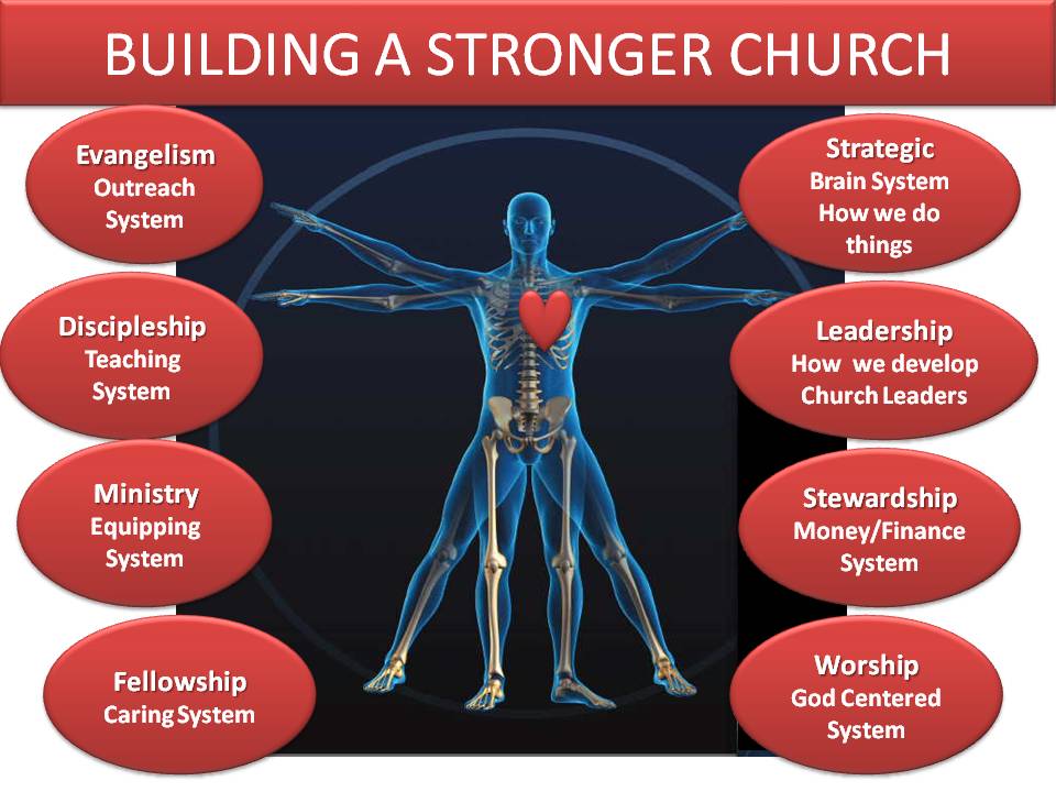 Our church is organized into 8 Systems which are Leadership, Strategic, Missions, Maturity, Equipping, Membership, Worship, and Stewardship. These 8 systems govern all church ministries and activities. Each system is led by a director or the Pastor.